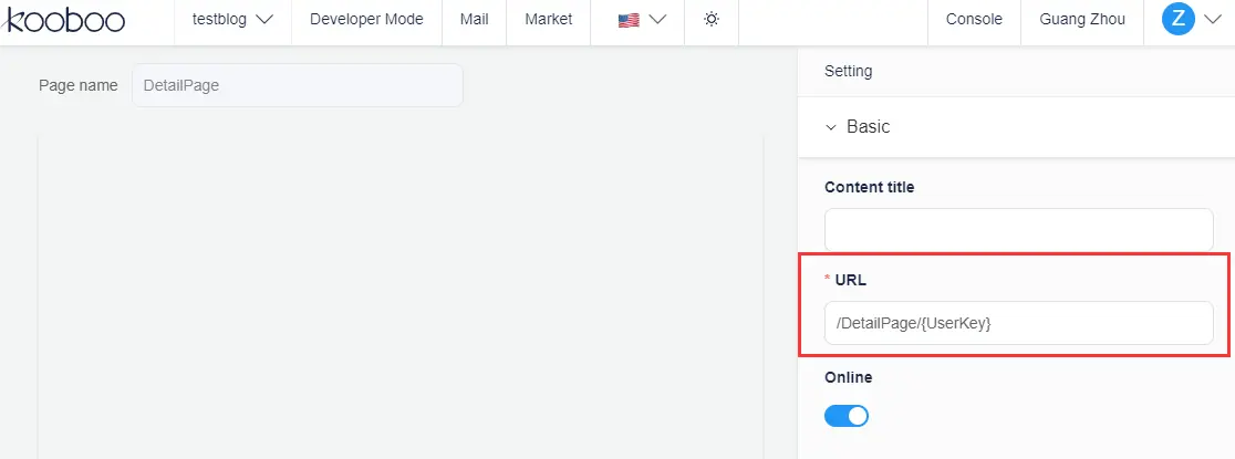 For example, in the detail page, you can set the URL as shown in the following image: