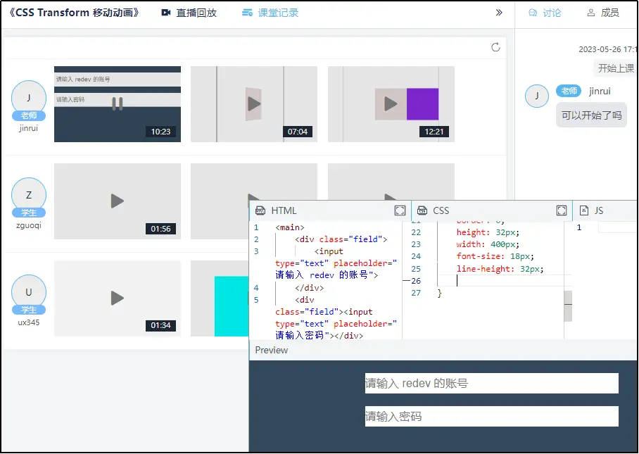 Below is an example screenshot of our innovative classroom that address above challenges.