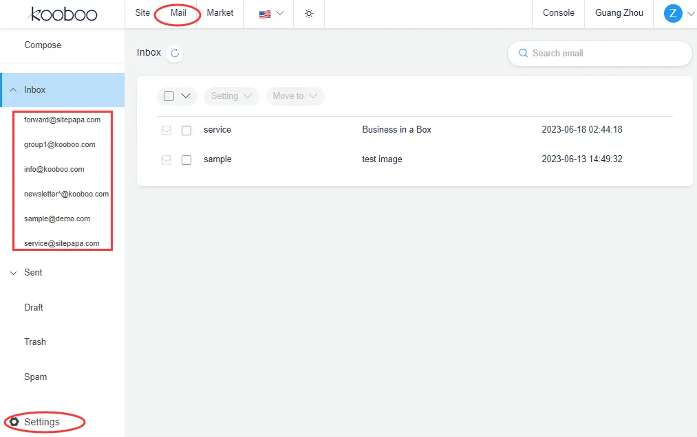 Kooboo offers a robust email server that comes pre-installed. When a domain uses Kooboo DNS Server, the MailBox function is readily accessible without any additional setup.