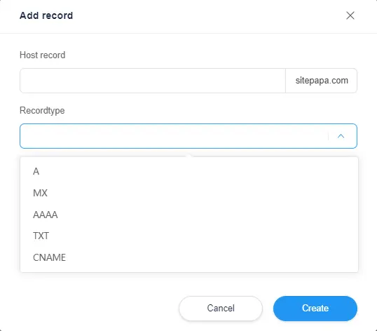 The DNS record types that can be added include: