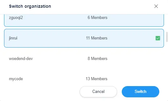 To switch organizations, simply click on "Switch Organization" located in the top right corner of the screenshot provided.