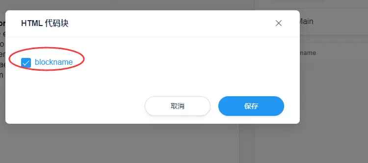 HTML代码块只有两个字段, 名称和内容, 内容是富文本编辑器。