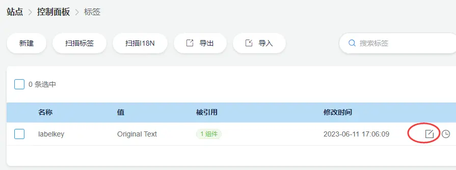 鼠标移到标签行的编辑按键。 点击 “编辑” 会打开一个标签编辑窗口。