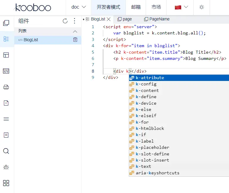 在普通模式下, 用户可以点击打开文件进行编辑。 常见的开发组件: