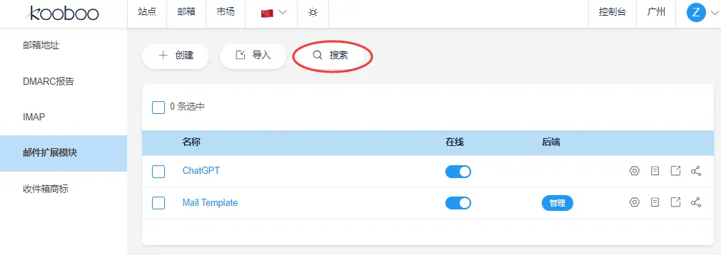 下图中的ChatGPT与Mail Template是系统内置的两个模块。