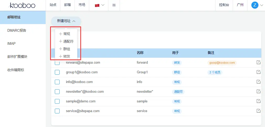 群组: 群组里的成员,只需发信在群组邮箱, 会自动转发级组里所有成员,类似可以回复的邮件列表