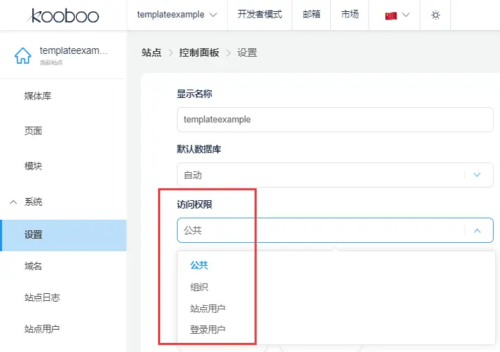 使用系统权限控制, 可以在系统设置中配置站点为需要登录的站点