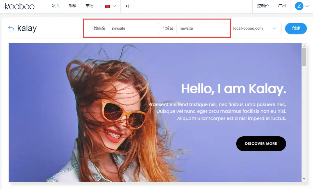 选中后, 进入该模板的详情页, 用户输入想要使用的名字与域名后就可以直接安装使用了。