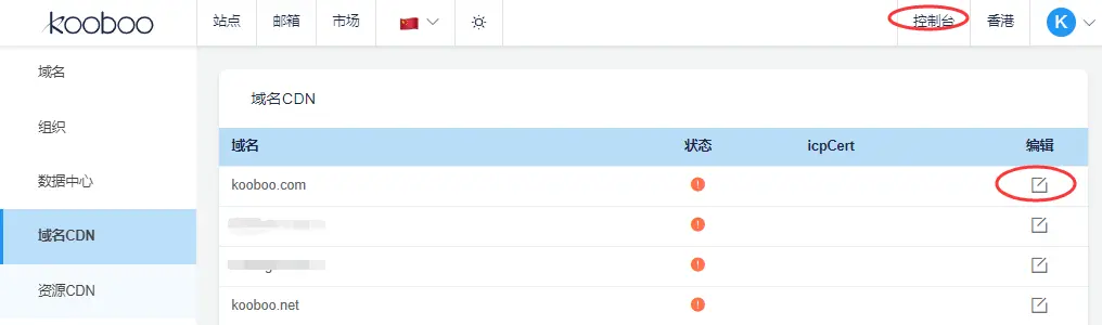 要激活CDN, 点击 “编辑”栏目,弹出编辑框