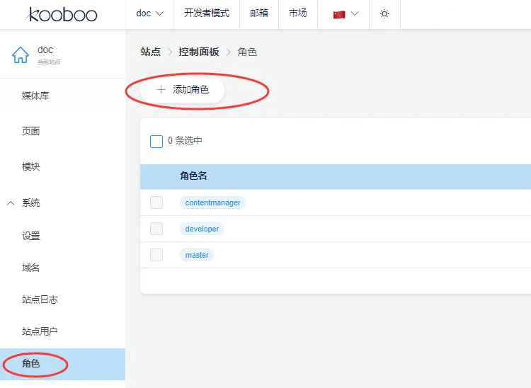 系统支持多用户, 导航到"系统" >“角色”, 点击 “添加角色”, 可以新增角色