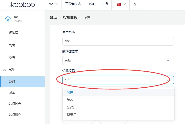以上是针对后台CMS访问,对外发布的网站也可以设置不同的访问权限, 导航到“系统”-- “设置”, 选择“访问权限”